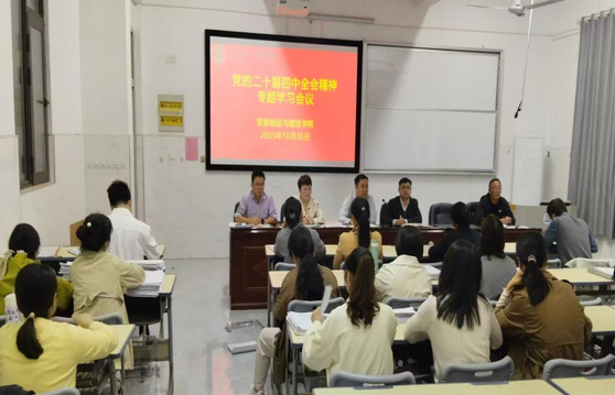 为深入学习贯彻党的二十届四中全会精神,切实把全体教师思想和行动统一到会议精神上来,2025年10月30日,智能制造与建造学院在仙女湖校区C栋104会议室召开党的二十届四中全会精神专题学习会,本次会议由党总支书记范向红主持,院长史洪松、副院长彭秋梅及全体教师参加。