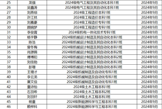 根据《江西工程学院国家励志奖学金管理办法(修订)》校政学字(〔2025〕26号)的文件精神,我院在学生个人申请的基础上,结合学校国家励志奖学金评定量化评分表,进行量化评定,班级评议小组复审后确定候选人名单,全班同学对评选结果表决通过并在全班公示,经学院评审小组审议后,拟推荐我院2022级电气工程及其自动化本科1班朱澄杰等46名学生为2024—2025学年度国家励志奖学金候选人,整个评选过程公平、公正、公开,现将拟推荐结果名单公示如下: