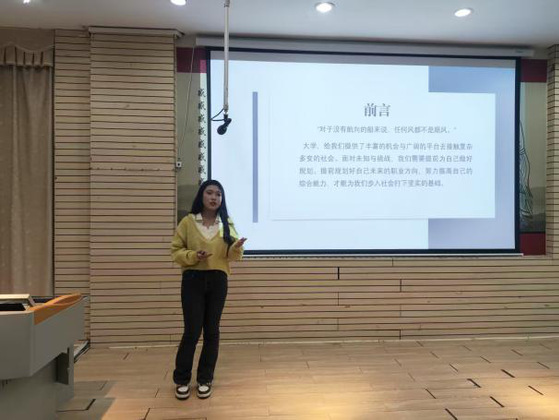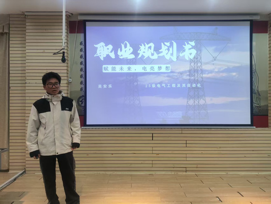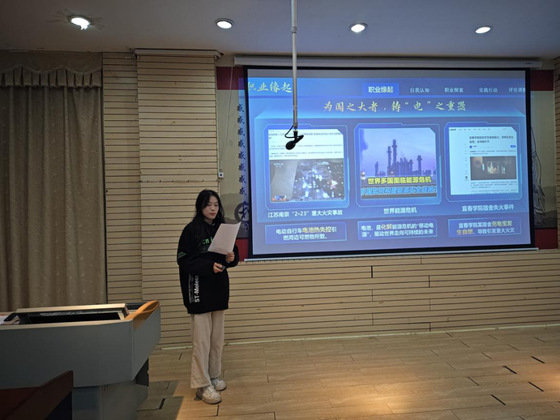 随后,参赛选手们依次上台,通过精致的PPT和生动的演讲展现出他们对未来的憧憬与规划。有的选手聚焦于智能制造领域的前沿技术岗位,从自身专业优势出发,详细阐述了如何通过不断学习新技术、积累项目经验,逐步成长为行业内的技术骨干;有的选手则着眼于建筑行业的项目管理方向,结合实习经历和对行业的深入调研,清晰地描绘出从基层岗位到管理岗位的职业发展路径,还有的选手关注新兴产业与传统制造业融合的机遇,提出了跨领域发展的独特思路,展现出对多元职业路径的积极探索。参赛选手们的精彩表现获得了同学们热烈的掌声。