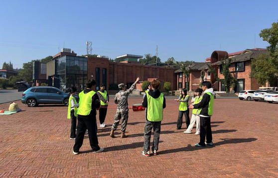 随后,户外拓展活动拉开帷幕,在同心击鼓项目中,9名同学协力控制鼓面颠球,领悟团队协作的平衡之道;珠行万里挑战中,乒乓球在弯曲管道中精准传递,培养专注力与抗压能力。辅导员李磊磊全程参与指导,引导同学们将活动感悟转化为专业学习的动力。