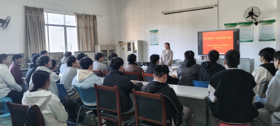 2025年11月29日,由智能制造与建造学院主办、自动化教研室承办的“智控未来·匠心筑梦”PLC编程与实操技能竞赛在S3B331实验室顺利举行。本次竞赛吸引了来自2023级机械设计制造及其自动化本科、自动化专升本等多个专业的学生踊跃参与,旨在响应国家“制造强国”战略,推动工业自动化领域高技能人才培养,助力产业转型升级。