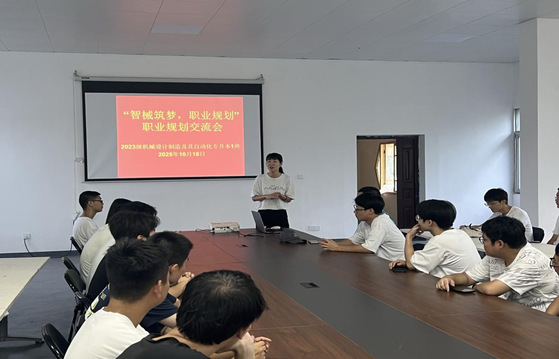 为深化课堂理论与实践结合,提升学生专业素养与团队协作能力20251018日,智能制造与建造学院组织机械设计制造及其自动化专业学生,前往江口超级俱乐部开展“智械筑梦,职业规划”职业规划交流会