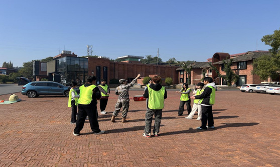随后,同学们在专业教练指导下展开一系列趣味游戏。在“同心击鼓”项目中,同学们协力控制鼓面颠球,领悟团队协作的平衡之道;在“珠行万里”挑战中,同学们操控管道使乒乓球精准传递到杯子里,培养了他们的专注力与抗压能力。通过这些趣味游戏,同学们不仅在欢声笑语中放松了身心,更在实践中深刻领悟到团队协作的真正意义。