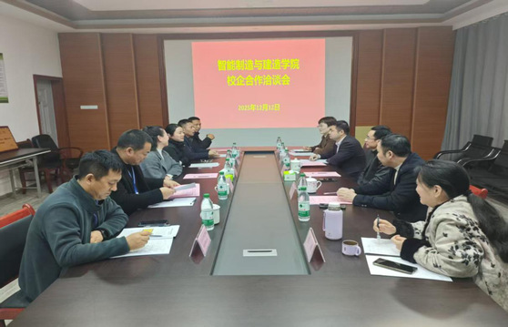 智能制造与建造学院召开校企合作洽谈会 为进一步深化产教融合,推动校企供需精准对接、优势互补。2025年12月12日,智能制造与建造学院在仙女湖校区A栋103会议室召开校企合作洽谈会。镇江市龙昊起重机械制造有限公司、江西航同电气科技有限公司、新余精佳科技有限公司、东莞市卓普芯能源科技有限公司、江西天岳汽车电气有限公司、江西中阳电器有限公司共6家企业代表参会。校党委委员、副校长刘德华,学院院长史洪松、党总支书记范向红、副院长彭秋梅出席本次洽谈会。 会上,刘德华首先代表学校对各企业代表的到来表示热烈