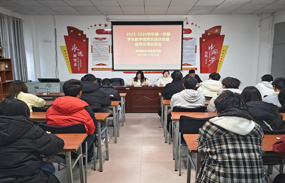 为进一步提升教学质量,加强学生与教师之间的沟通。20251226日,智能制造与建造学院在仙女湖校区B104会议室召开2025-2026学年第一学期学生教学信息员座谈会暨信息反馈总结会,本次会议由教学督导员韩慧芳主持,李磊磊、李红艳两位老师及各班学生教学信息员参加。