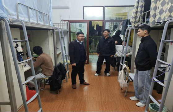 走访过程中,范向红与辅导员逐一走进各宿舍,与同学们亲切交谈,细致询问大家的寒假生活点滴、新学期学习规划以及返校后的住宿适应情况。同时,实地检查了宿舍卫生状况与设施情况,重点强调宿舍安全问题,叮嘱同学们保持宿舍整洁通风,规范用电行为,严禁使用违规电器,共同守护宿舍安全。