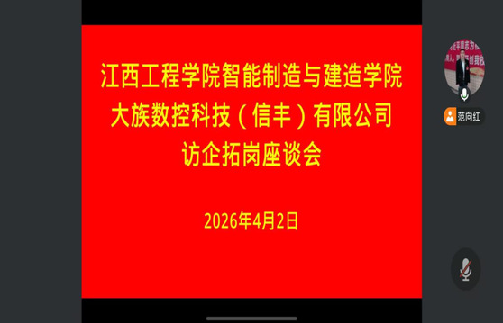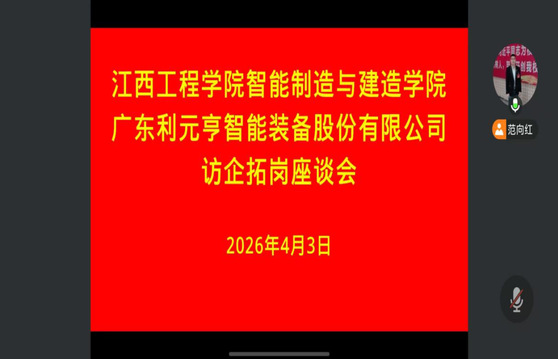 为进一步拓宽学生就业渠道,深化产教融合。202641日至3日,智能制造与建造学院与宁波极氪人力资源有限公司、江西铭基高科电子有限公司、广州利元亨智能装备股份有限公司等12家企业开展线上访企拓岗座谈会,座谈会由党总支书记范向红主持。