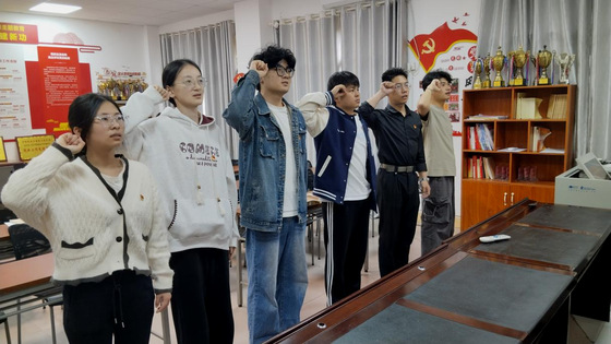 重温入党誓词,凝聚安全自觉与使命力量。会议尾声,毕业生党员肃立,面向鲜红党旗高举右拳,庄严重温入党誓词。铿锵有力的誓言在会议室回荡,字字千钧、句句铭心,既是对初心使命的再次叩问,也是对责任担当的郑重承诺。