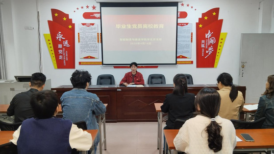 毕业骊歌渐起,青春征程再启。为积极响应习近平总书记“把个人的理想追求融入党和国家事业之中,为党、为祖国、为人民多贡献”的殷切号召 ,进一步强化毕业生党员党性修养、明确离校相关事宜,2026414日下午3点,智能制造与建造学院B104会议室召开全体毕业生党员离校教育大会,学院党员教师与全体毕业生党员齐聚一堂,共话初心使命,部署离校事宜。会议由学生党支部书记钟丽花主持。